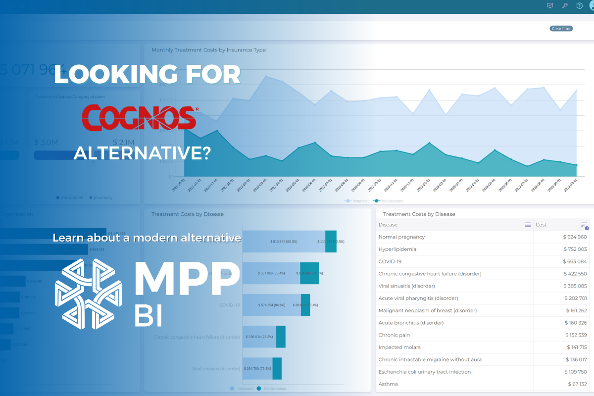 MPP BI is also a Business Intelligence platform that creates analytical reports for enterprise-level companies. This platform can be a Cognos alternative for companies that want a more modern solution and lower costs without sacrificing value.
